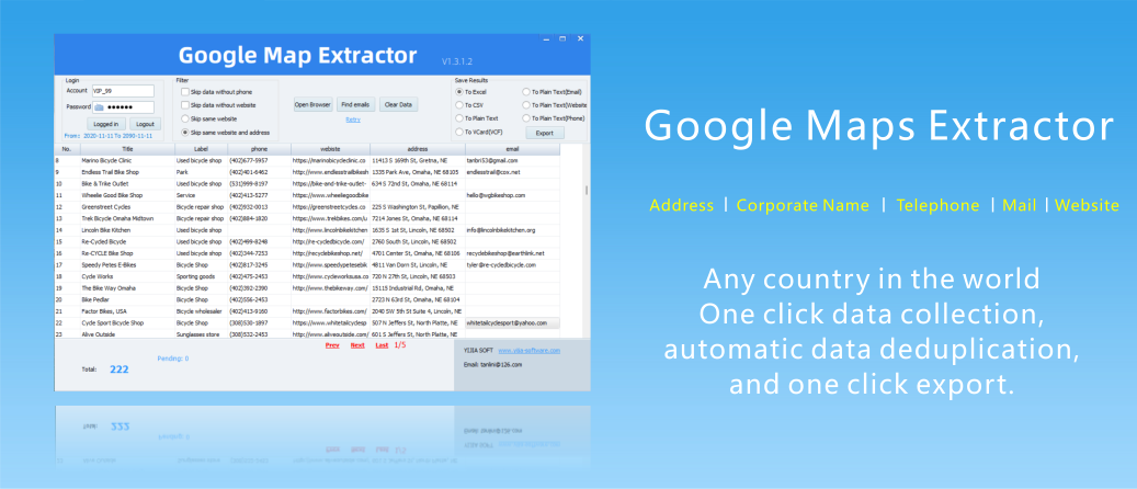 Big data collection based on Google Maps, easy access to data, names, phone numbers, web addresses, and address data from any country, one click collection of email, automatic data duplication removal, and one click export help you deeply collect accurate customers.