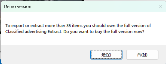Note 1: Export is active only with the “full” version of the program. In the demo version however, after 35 captured results the following window will appear inviting you to purchase the program license.