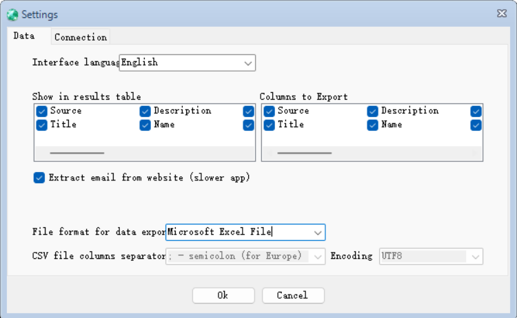 From the program settings, in addition to choosing the format of the exported file, it also allows you to select which data to export. For example, if you are interested in exporting only the advertiser's name and his mobile (or landline) number, select the “Name” and “Phone” boxes and click OK to confirm. This way the exported file will contain only these two columns.