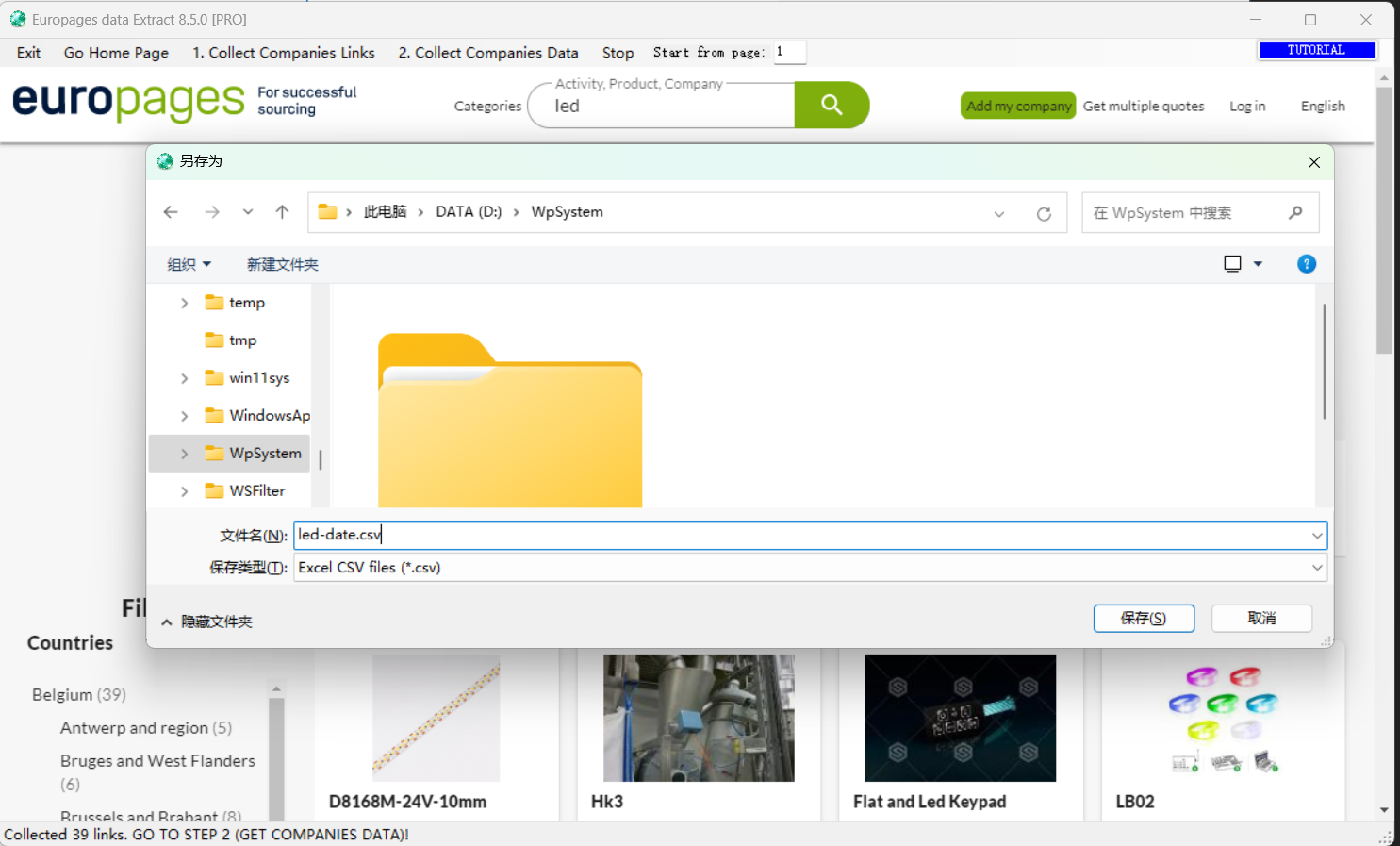 STEP 7. It will open the window where you have to type the name and the folder where the CSV file will be saved. In the CSV you will have all info of captured companies (business name, address, phone, emails, website url)