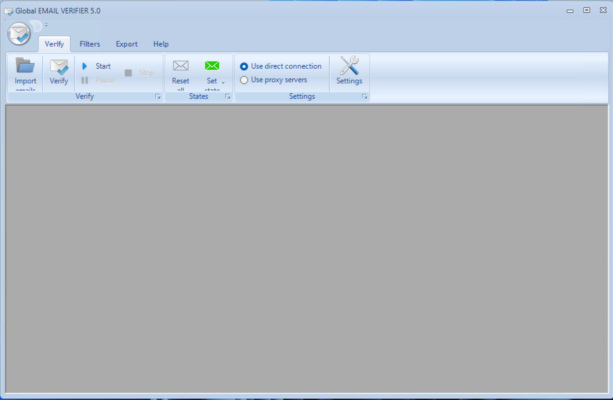 To start checking email addresses, you only need to do one thing: click on the VERIFY button at the top. Globo Mail Verifier will automatically make 3 types of verification (in addition to checking the double emails already done when loading the list):