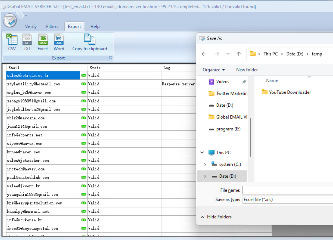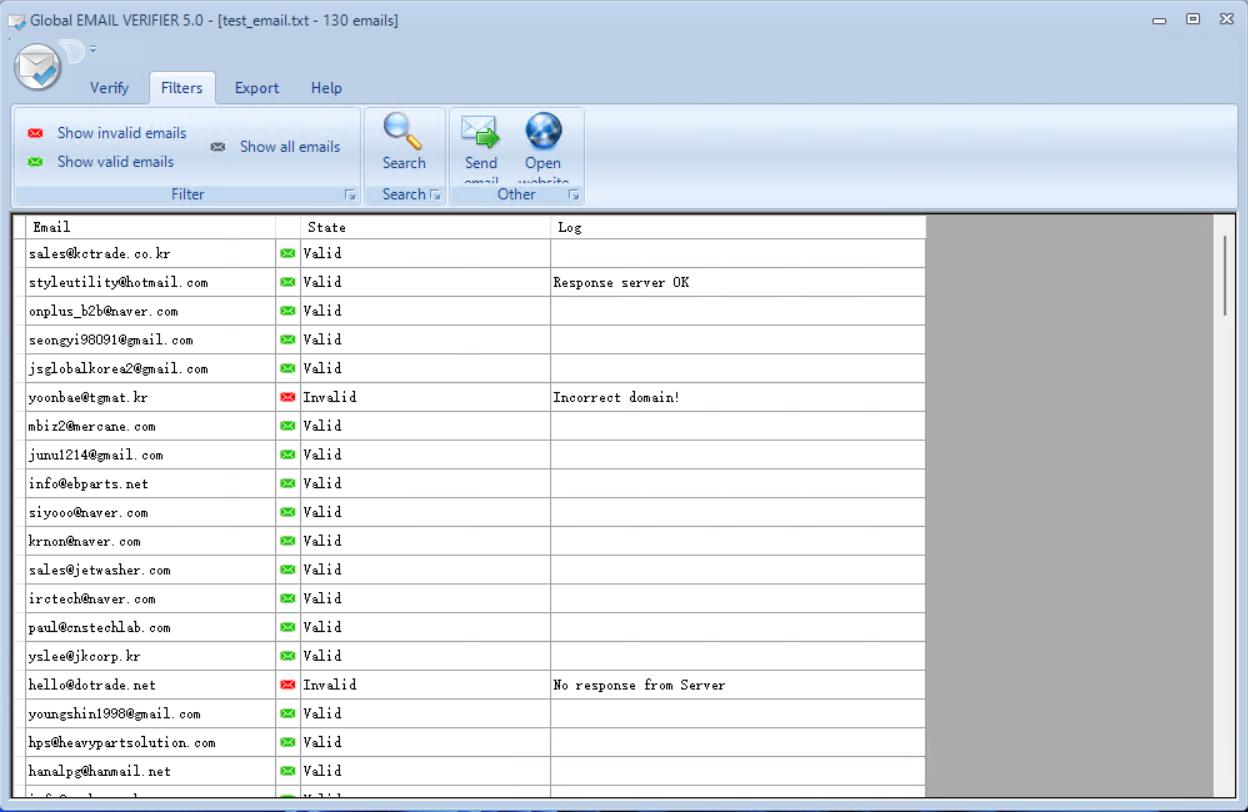 To avoid this problem, our program Global EMAIL VERIFIER can help you. It is a software that can thoroughly analyze a list of email addresses and for each email tells you if it is VALID or INVALID. In this way you can export only valid emails and make your email marketing campaigns on them.