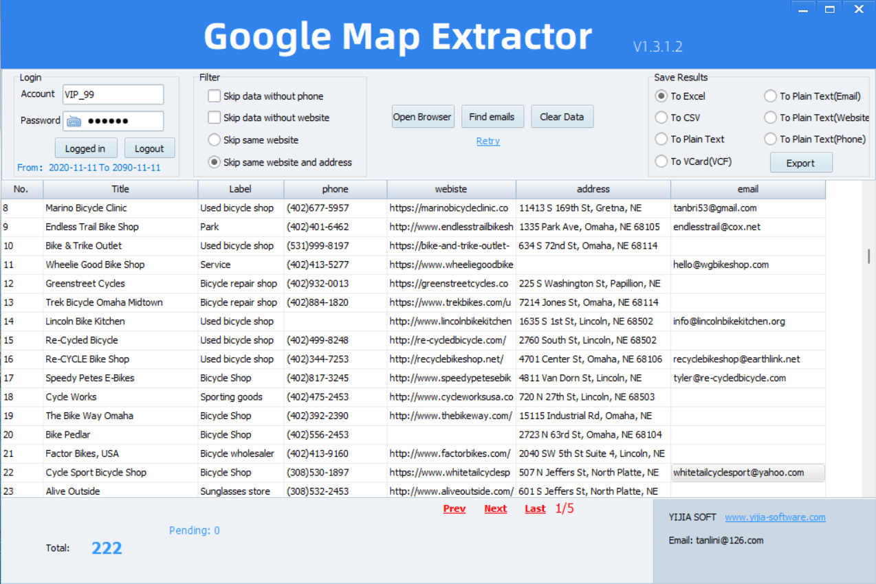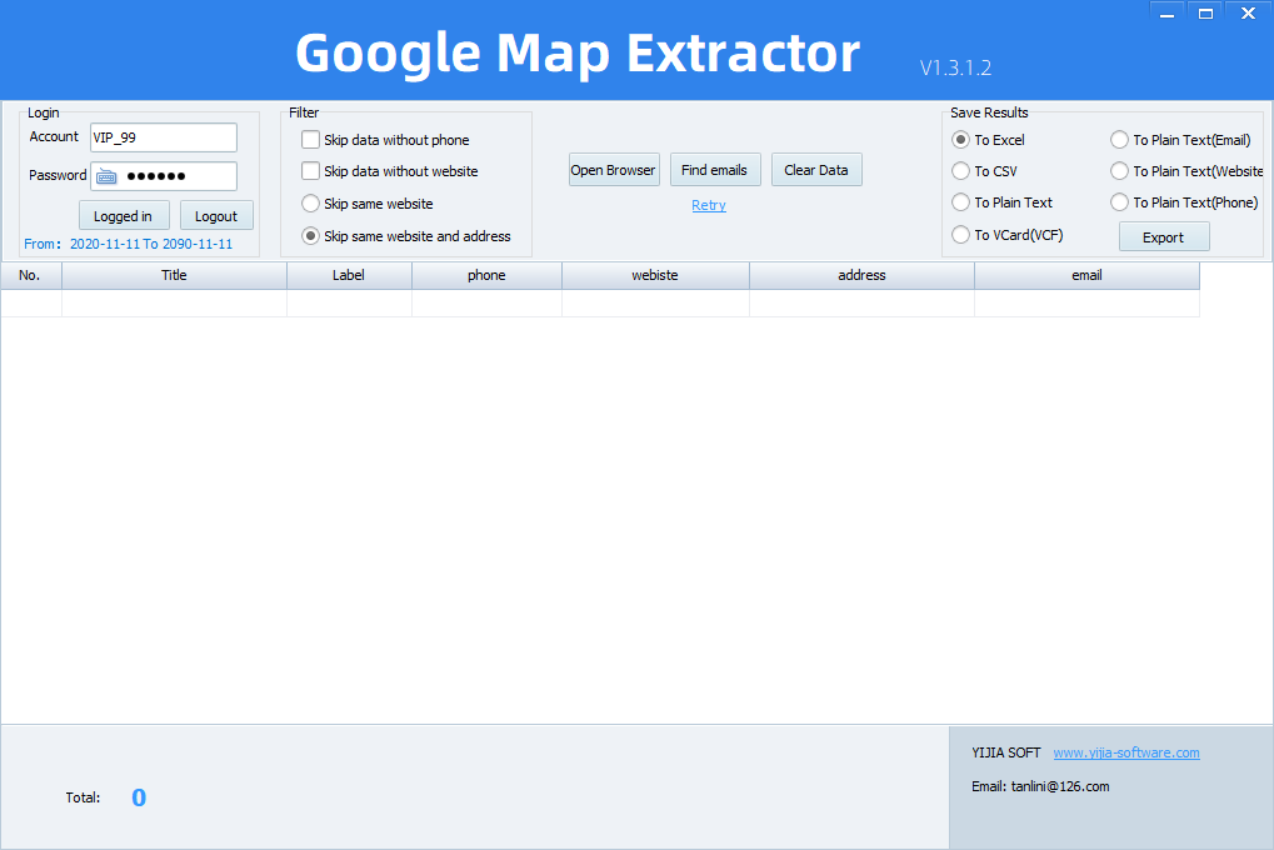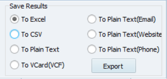 > One click export of results, supporting multiple export formats such as XLS, TXT, CSV, VCF, etc.