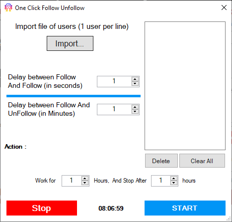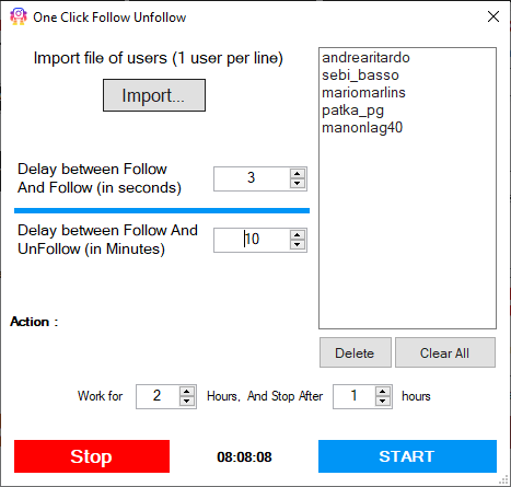 Click on IMPORT to import the username’s file to follow for a few minutes / hour and then stop following (in rotation).