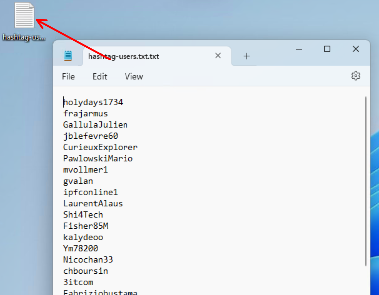 1).Import txt the list of users you want to send a message to (e.g. the list of your followers)