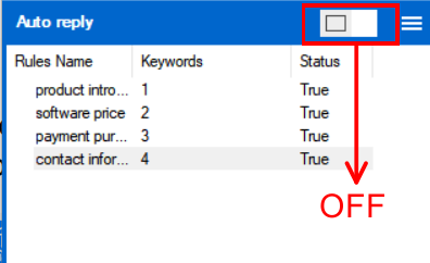 At any time you can activate or deactivate the sending of these automatic replies by clicking on the cursor at the top. By positioning the switch to the right (WHITE), automatic replies will NO longer be sent.