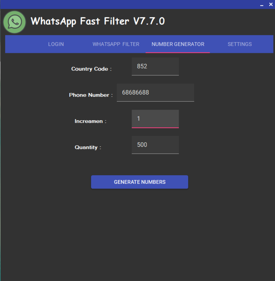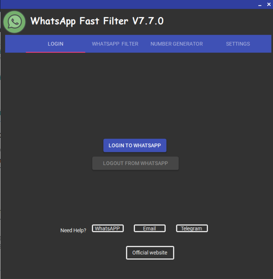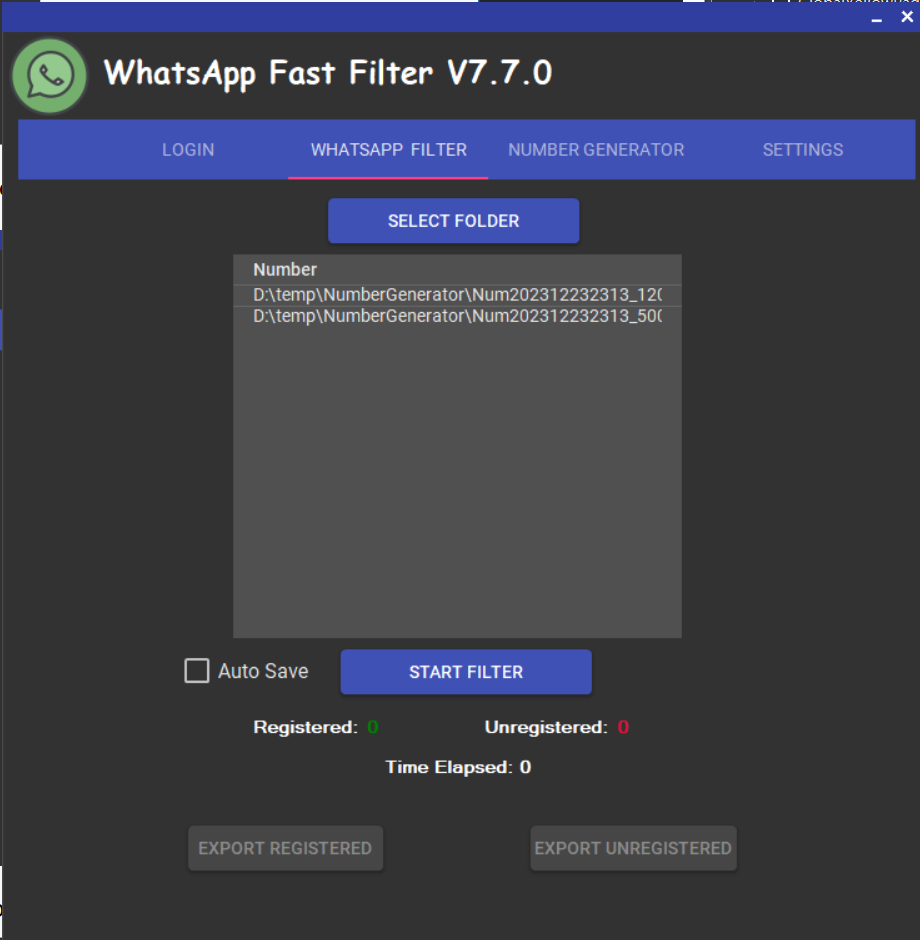 Run the main program Whatsapp Fast Filter.exe, This is the program’s main interface:
