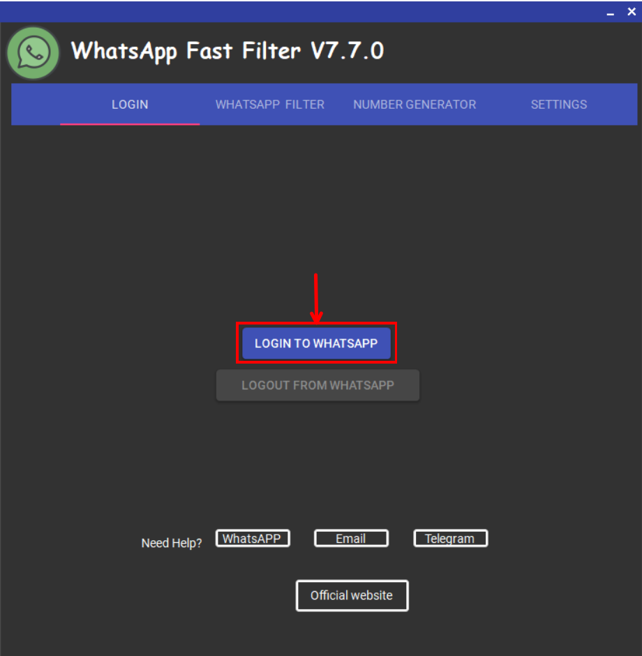 STEP 2. Click on LOGIN TO WHATSAPP to log in to your WhatsApp.